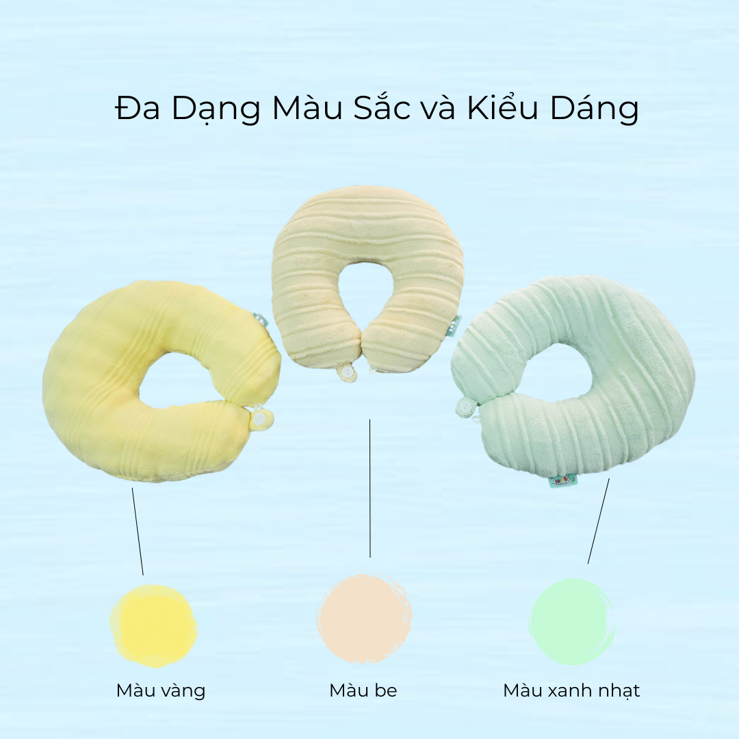 - Gối tựa cổ có 3 màu: Vàng, Be, Xanh lá nhạt – phù hợp nhiều độ tuổi và phong cách. Ngoài ra, gối còn được dệt sọc sang trọng, giúp gối không chỉ êm ái mà còn nổi bật, thời trang.