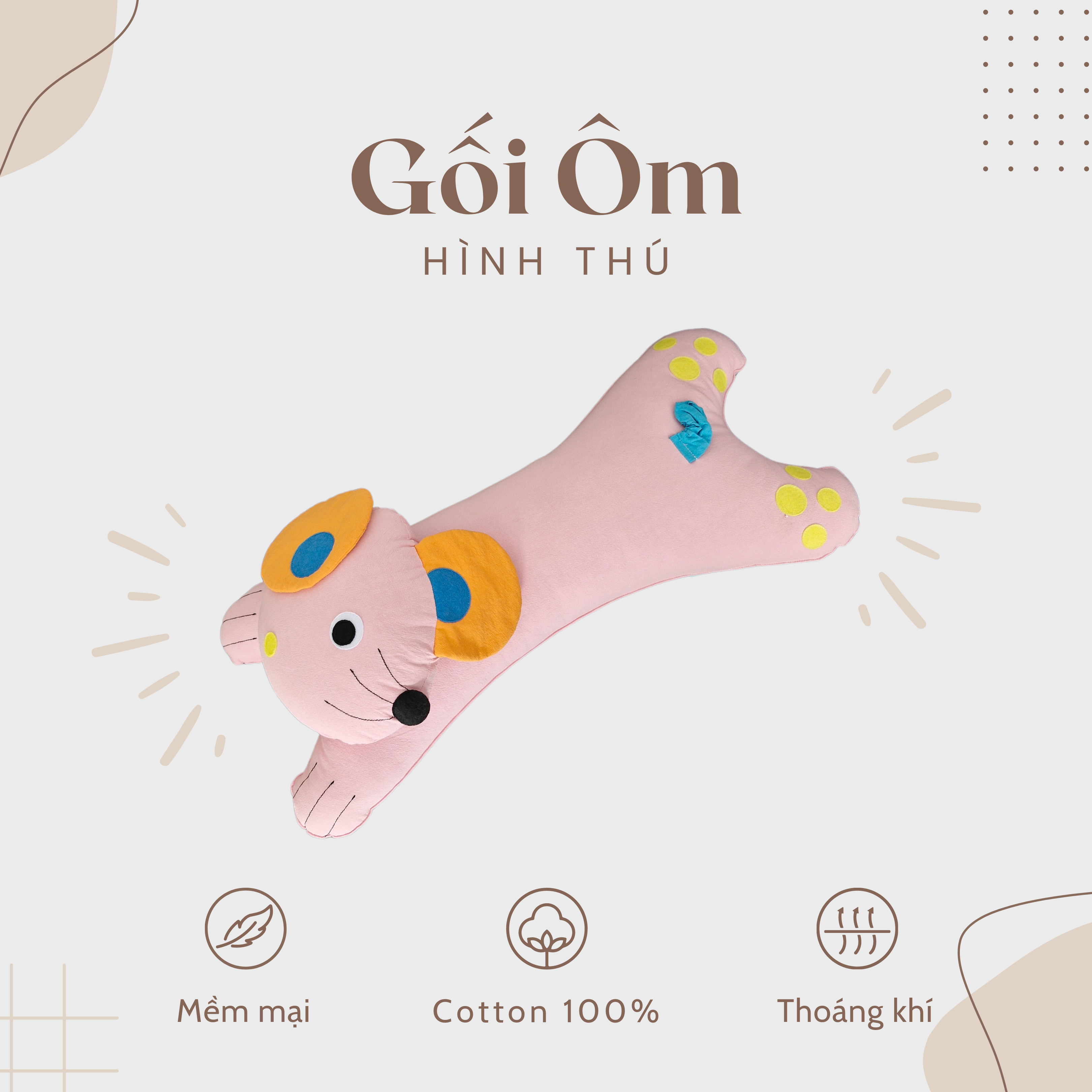Gối ôm đắp hình thú dễ thương được làm bằng chất liệu 100% Cotton mềm mại, thoáng mát, không gây nóng, không xù lông. Tạo cảm giác thoải mái, êm ái khi sử dụng.