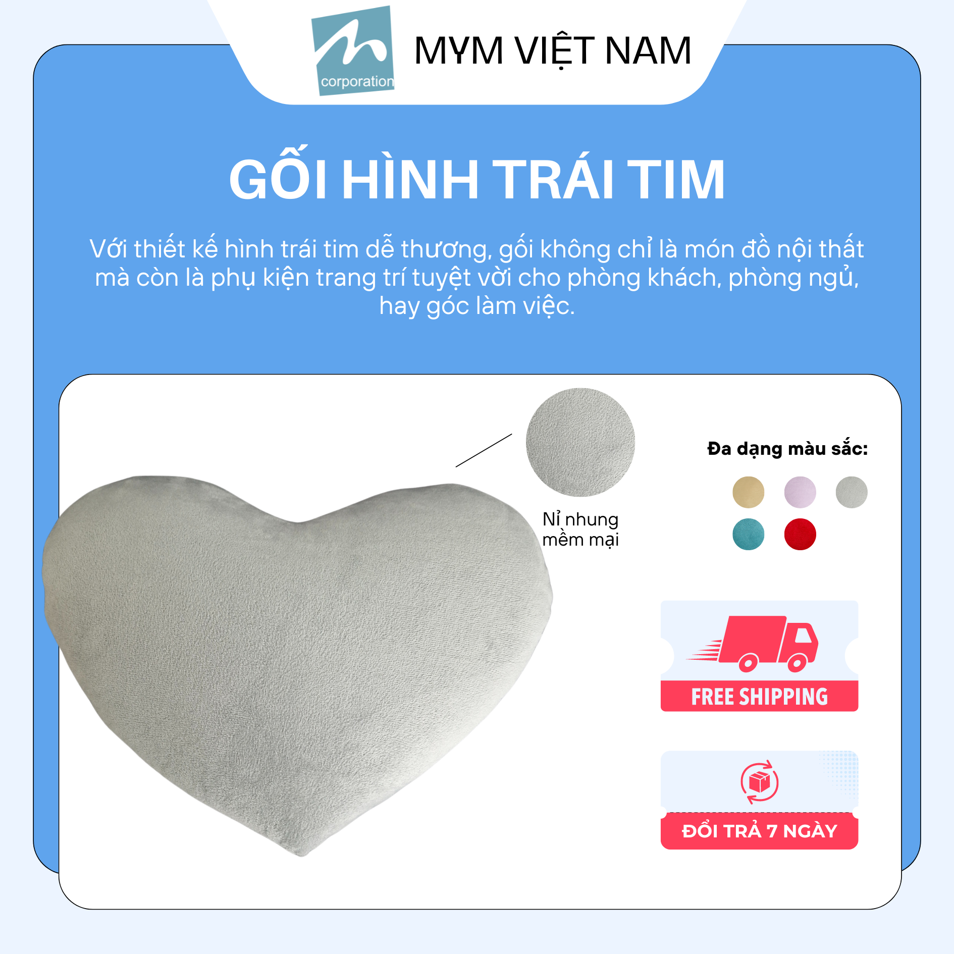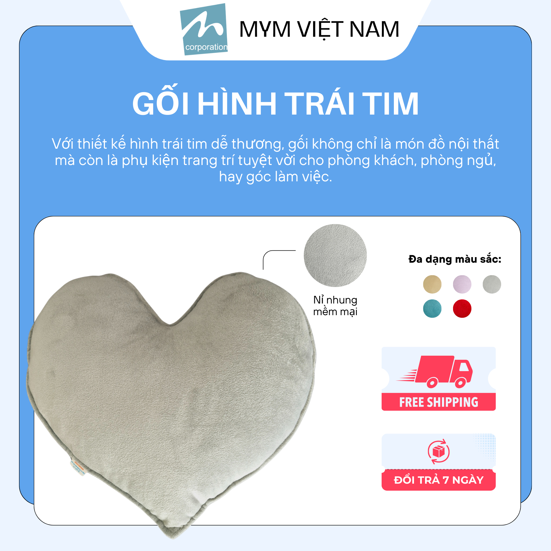 - Thiết kế và tiện ích: Gối tựa lưng hình trái tim có kích thước vừa phải, phù hợp để sử dụng ở nhiều không gian khác nhau. Bạn có thể sử dụng gối tựa lưng khi ngồi đọc sách, xem tivi, hoặc nghỉ ngơi. Gối cũng có thể làm món quà ý nghĩa dành tặng cho người thân, bạn bè trong các dịp đặc biệt như sinh nhật, lễ tình nhân hay ngày kỷ niệm.