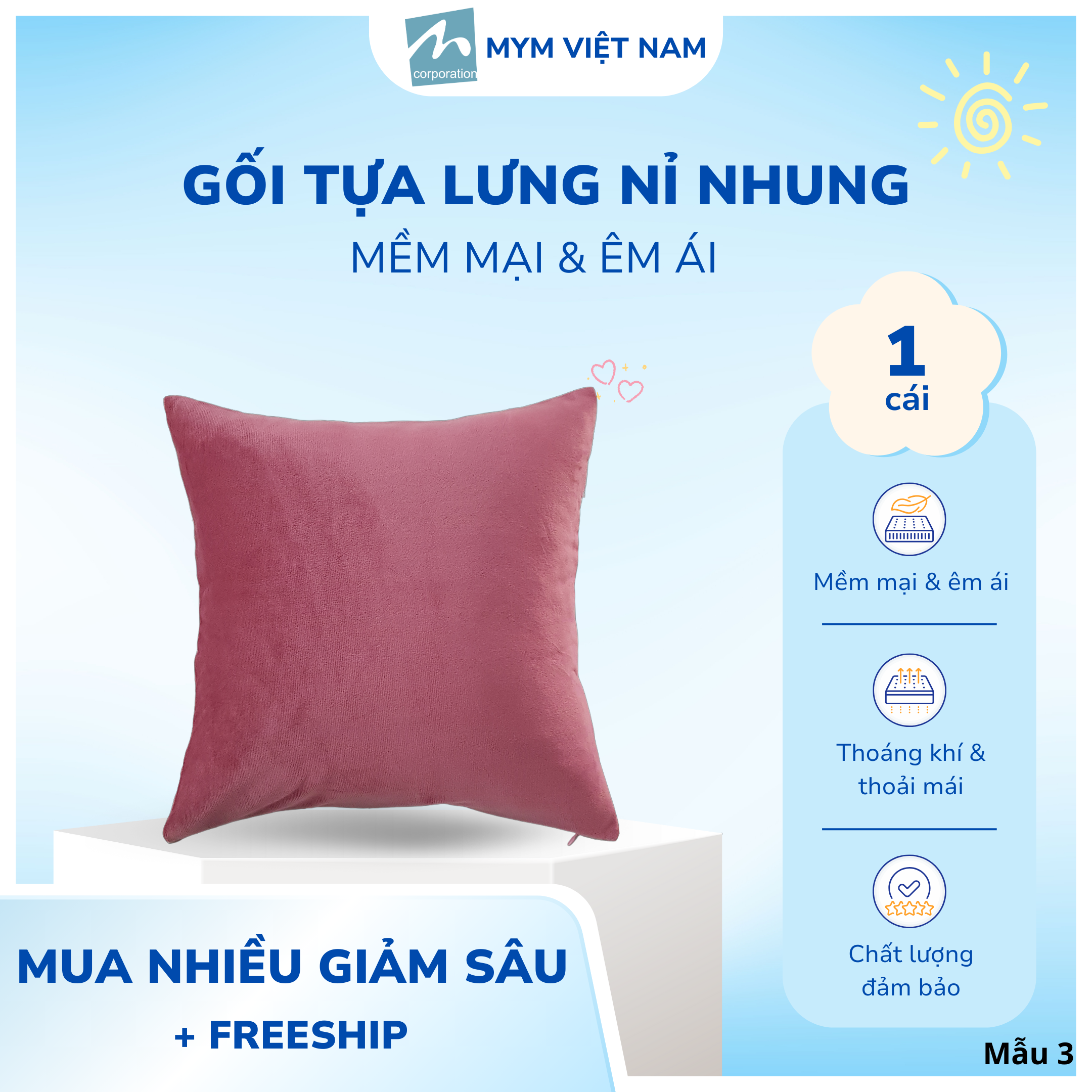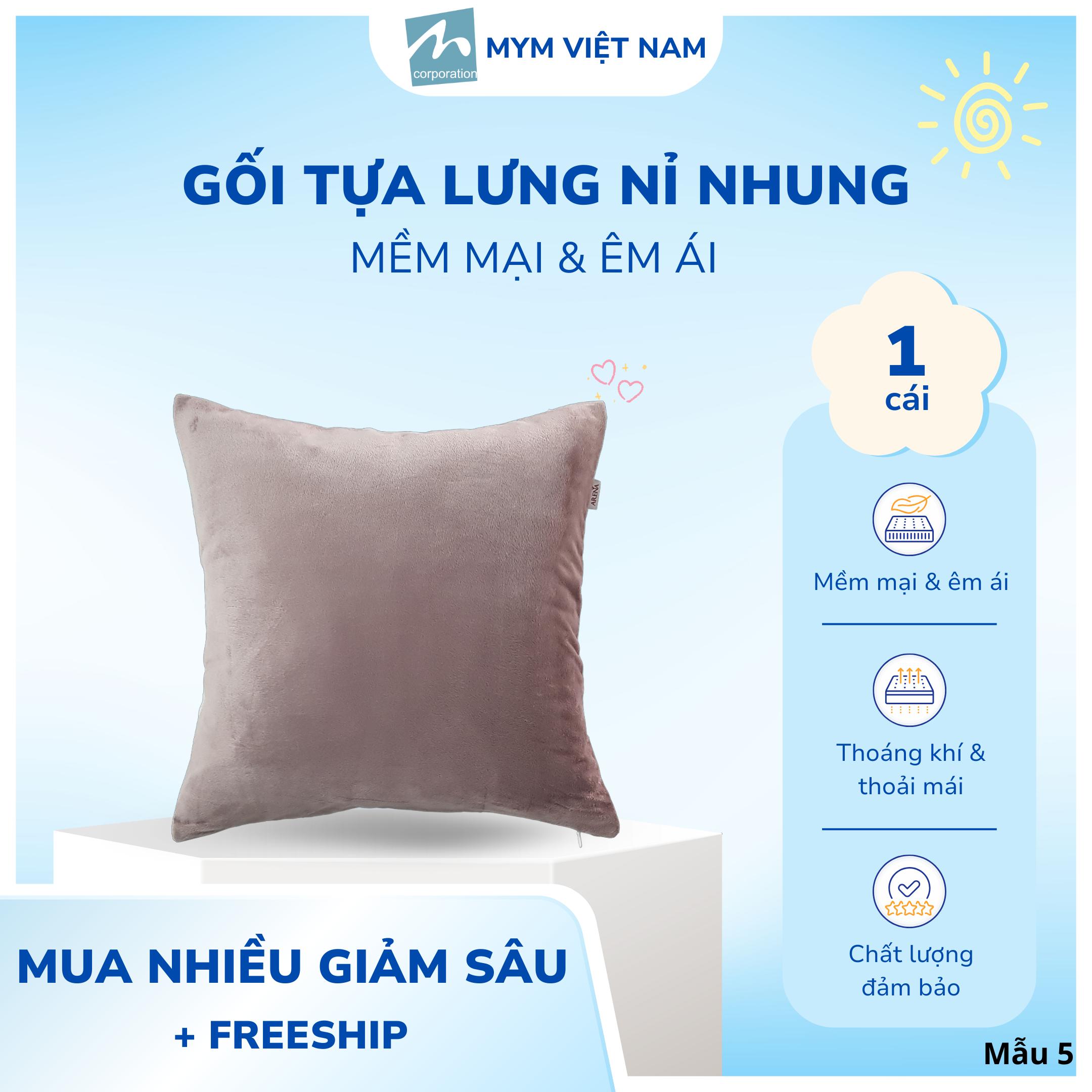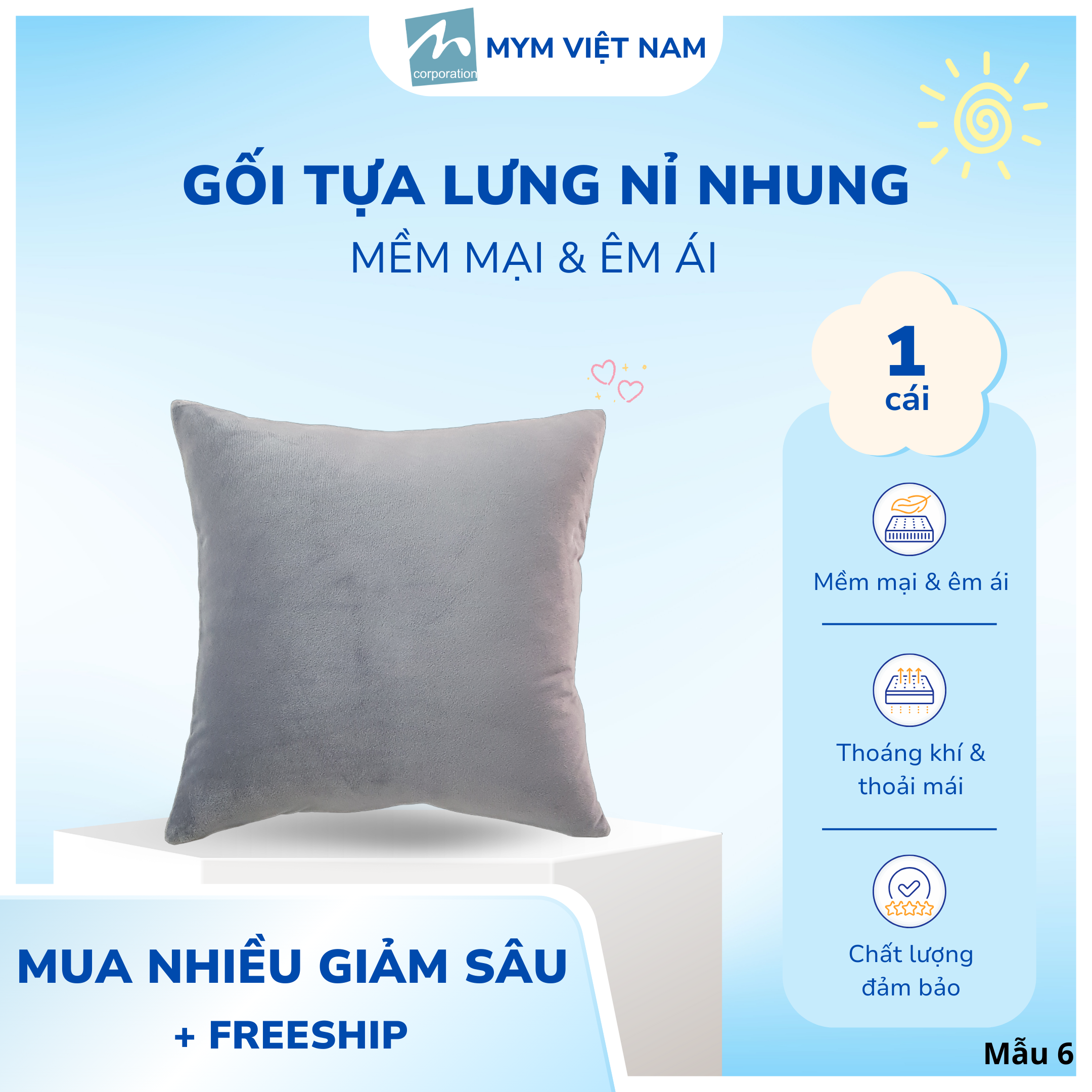 Chi tiết: Áo gối có dây kéo + Ruột gối 40cm x 40cm (dễ vệ sinh khi áo gối bị bẩn)